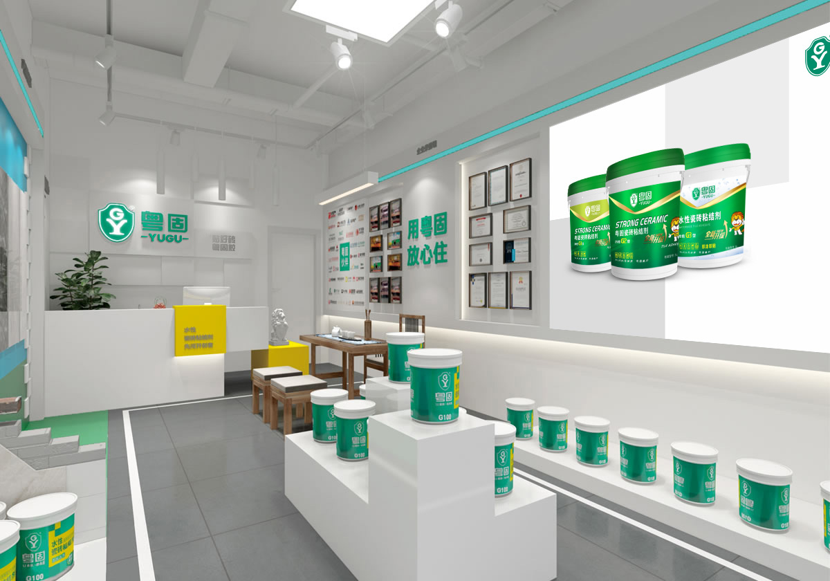 單門頭招牌形象_廣東粵固建材科技有限公司 粵固?瓷磚粘結劑,瓷磚背膠十大品牌_防水涂料_美瓷膠_招商加盟_加盟店形象