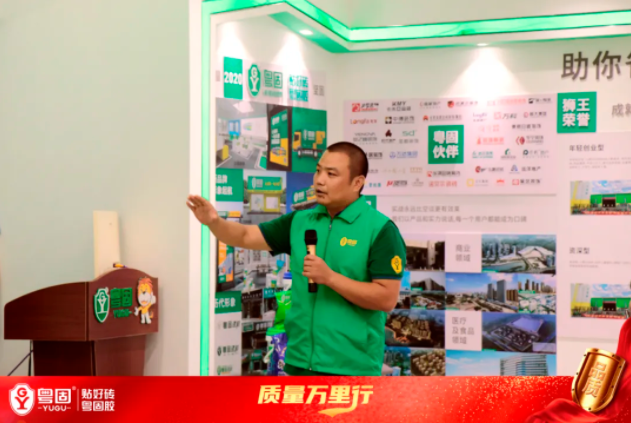 好的產品,必須有相對應的施工工藝配套才可以發揮產品的全部實力,“粵固萬里行”不單向全體經銷商、渠道商、裝企、建材從業者、瓦工師傅展示體驗粵固產品品質,也更重視產品知識的傳遞,由粵固清遠專賣店店長李向陽親自分享自身案例,讓更多的人學習到正確的瓷磚粘結劑使用技巧與了解造成瓷磚空鼓、脫落的主要原因。更好的規避因為錯誤施工所帶來的風險與潛在隱患,從源頭解決由于施工錯誤所導致的空鼓掉磚的問題發生。