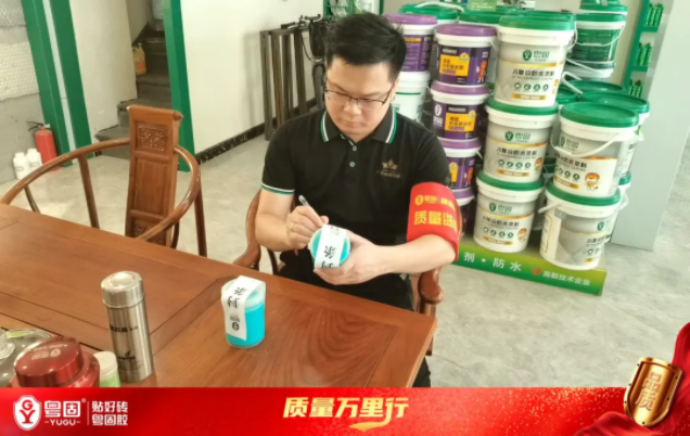 為了確保本次“粵固質量萬里行”清遠站,產品質量可追溯,在質量監督員使用粵固產品鋪貼瓷磚完畢后,會對使用的后粵固剩余材料進行留樣封存,確保本次“粵固質量萬里行”清遠站活動產品測試環節真實、有效!