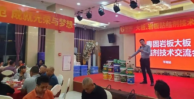 粵固(gu)大板、巖(yan)板鋪貼(tie)交(jiao)流(liu)會(hui),在全國巡回,成功召開(kai)100余場專業技(ji)術(shu)交(jiao)流(liu)會(hui)議(yi),推動大板、巖(yan)板鋪貼(tie)工藝、粘結(jie)材料普及,讓粵固(gu)品牌形象更為深入人心(xin)!